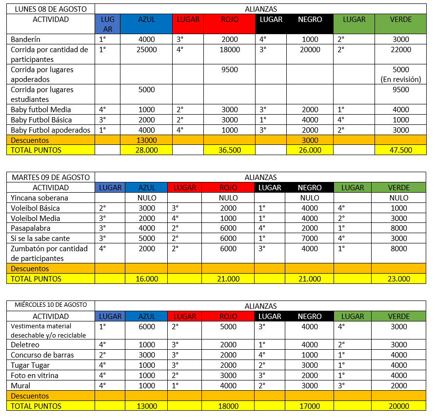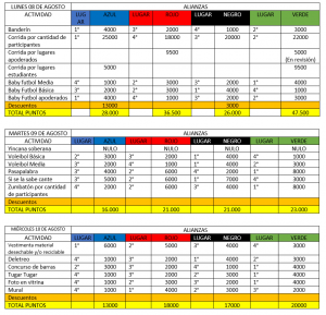 PUNTAJES HASTA MIÉRCOLES 10