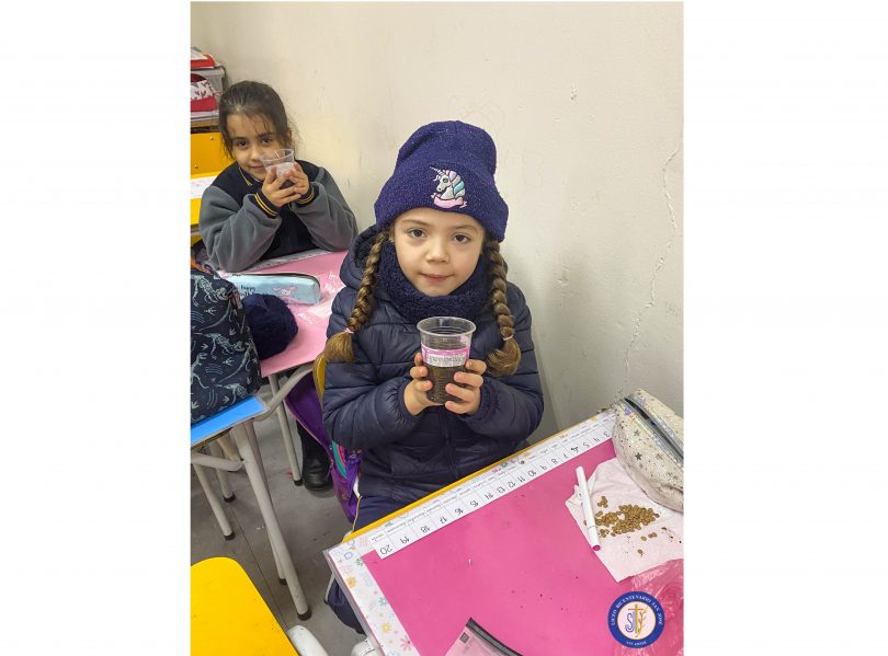 Estudiantes de 1° básico A – B realizaron el experimento de sembrar una semilla de poroto y lenteja