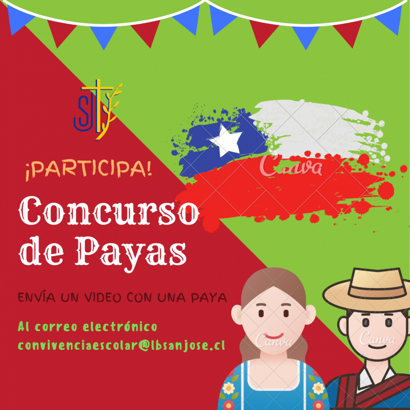 Muy fácil, debes enviar un video diciendo una paya, aludiendo a nuestras Fiestas Patrias, al correo electrónico convivenciaescolar@lbsanjose.cl