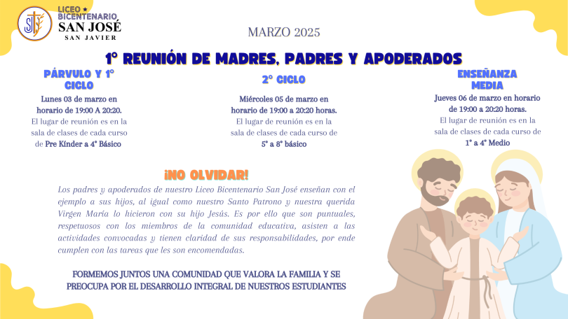 1° REUNIÓN DE MADRES, PADRES Y APODERADOS – MARZO 2025