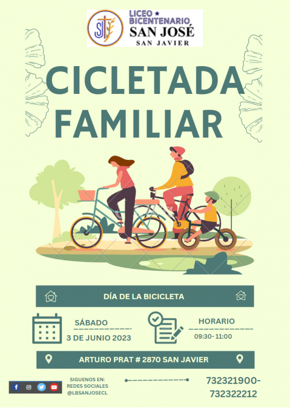Recordamos que es una invitación para toda la familia, con el fin de conmemorar el Día Internacional de la Bicicleta, además de contribuir al cuidado del medioambiente, ya que generamos menos impacto medioambiental al utilizar este medio de transporte. Asimismo, esta actividad está orientada para compartir en familia y promover la actividad física y bienestar emocional de todos los participantes, es decir, toda nuestra comunidad.