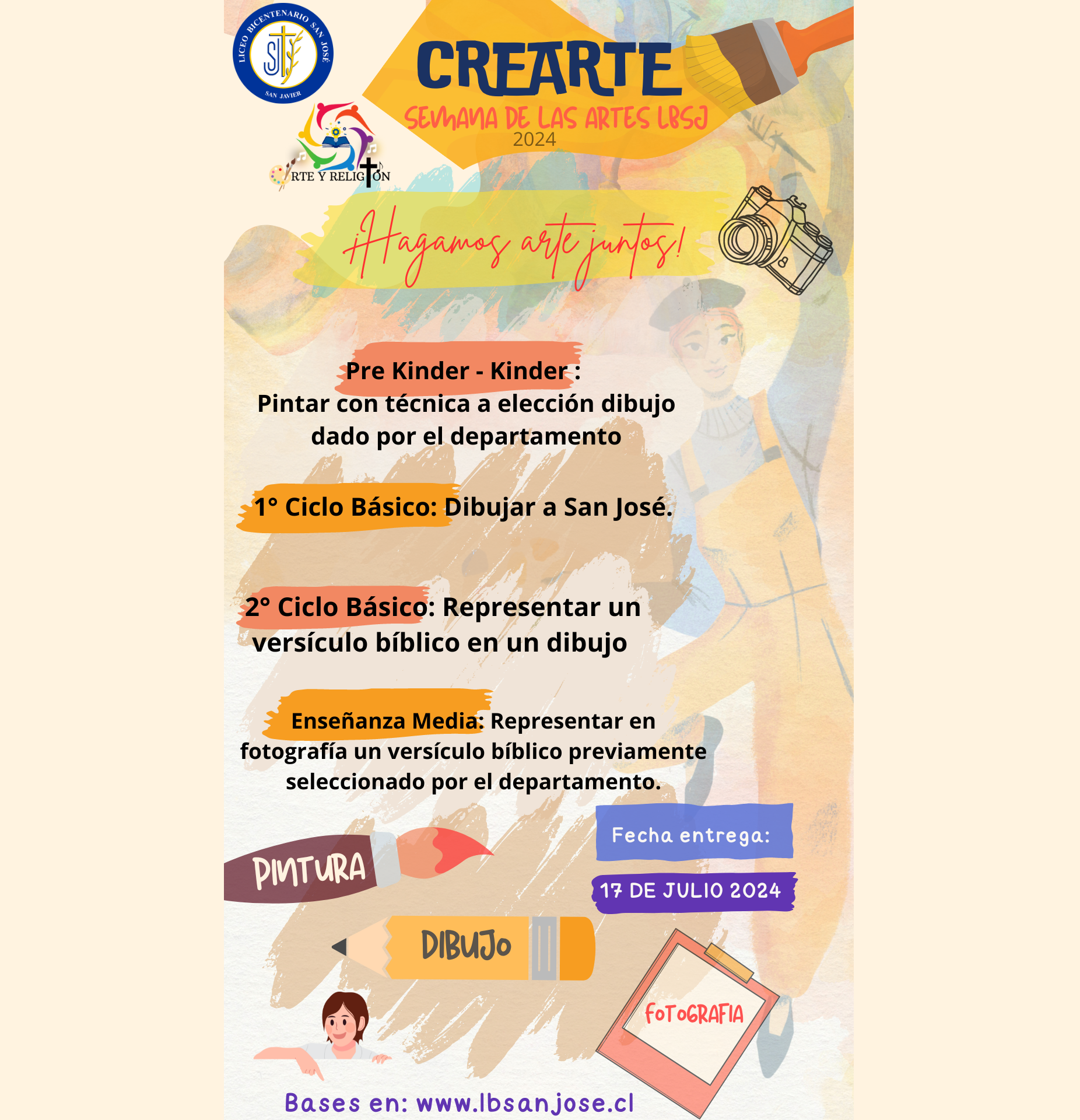 Estimados estudiantes y apoderados Liceo Bicentenario San José, los invitamos a participar de los concursos organizados por el Departamento de Artes y Religión para el mes de julio.