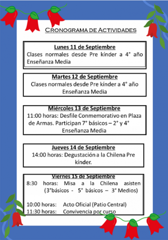 CRONOGRAMA ACTIVIDADES SEMANA FIESTAS PATRIAS