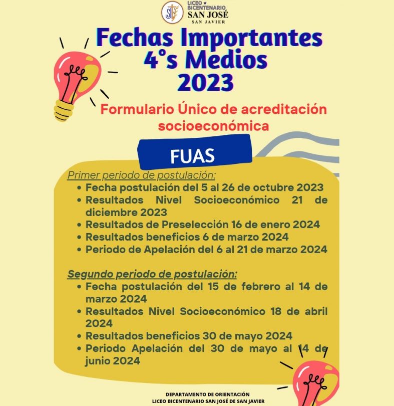 FECHAS IMPORTANTES 4° MEDIOS: FUAS