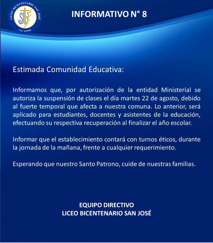 “Una sólida formación valórica, reflejada en las virtudes de nuestro Santo Patrono San José”.