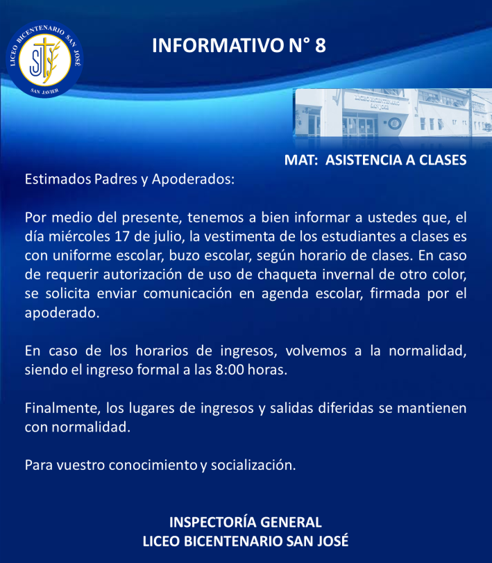 INFORMATIVO N° 8. MAT: ASISTENCIA A CLASES