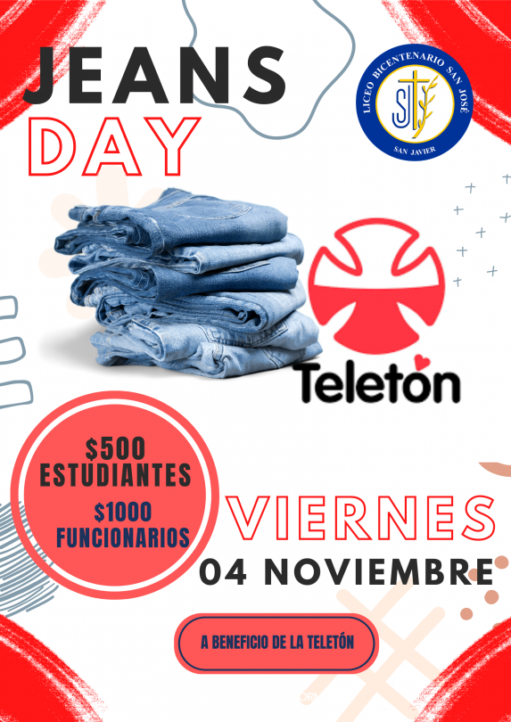 Junto con saludarles cordialmente y esperando que se encuentren bien, queremos invitarlos a participar del Jeans day que se realizará el día viernes 04 de noviembre a beneficio de la Teletón 2002, para contribuir con la campaña solidaria a nivel nacional que se realiza cada año los días 04 y 05 de noviembre.