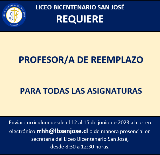 LBSANJOSÉ REQUIERE: PROFESOR DE REEMPLAZO PARA TODAS LAS ASIGNATURAS