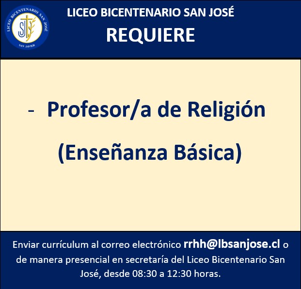 LBSANJOSE REQUIERE PROFESOR DE: RELIGIÓN (ens. básica)