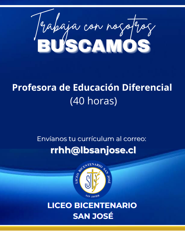 LBSANJOSE REQUIERE: PROFESORA DE EDUCACIÓN DIFERENCIAL (40 horas)