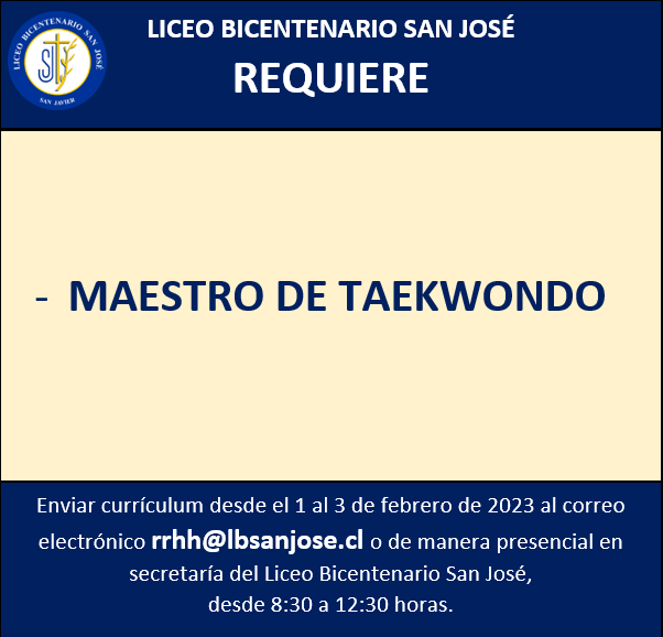 LBSANJOSÉ REQUIERE: – MAESTRO DE TAEKWONDO