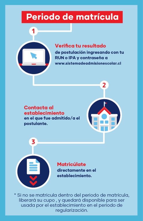 Se informa a los Padres y Apoderados, de estudiantes nuevos, que de acuerdo a Sistema de Admisión Escolar (SAE), las matrículas, se realizarán a partir del día miércoles 15 de diciembre, en los siguientes horarios: