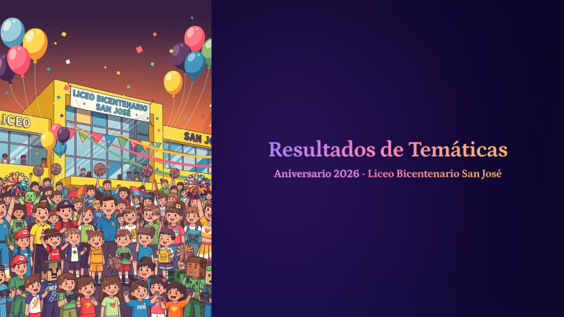 Con entusiasmo y alta participación, nuestro Liceo Bicentenario San José dio a conocer los resultados de la votación oficial para definir la temática del Aniversario 2026, liderados por el Centro General de Estudiantes y Equipo Asesor del CGE.