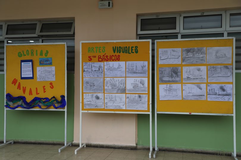 Esta exposición se realizó a partir del proyecto artístico correspondiente a la segunda nota de artes visuales de dicho curso, quienes trabajaron arduamente para rendir homenaje a los héroes de nuestra historia naval.
