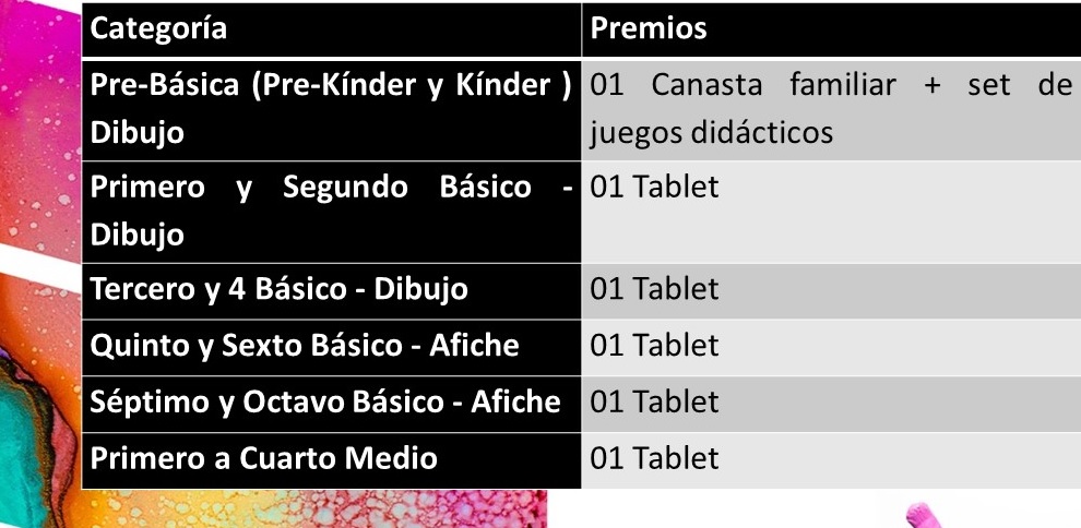 En este sentido mencionar que, el jurado correspondía a profesionales externos al Liceo, en donde se consideró en los dibujos y afiches, contenido, impacto del mensaje y la incorporación de un factor protector.