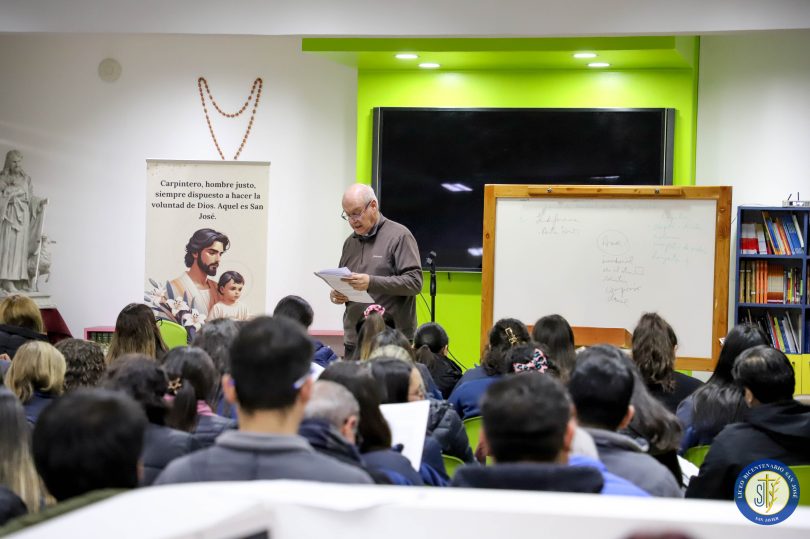 El día martes 7 de mayo, en el marco de la preparación para el congreso de la Doctrina Social de Iglesia, nuestro Obispo Monseñor Tomislav Koljatichizo una visita a nuestro establecimiento para dar un tema sobre el mensaje del Papa Francisco para la celebración de la XLIX jornada mundial de la paz. Este texto busca promover un mensaje de unidad y a la vez generar instancias de reflexión, debate y una mirada acogedora, en la cual los estudiantes por medio de sus profesores logren conectarse con su entorno y sepan discernir de acuerdo a los tiempos que se van viviendo. Siempre bajo la mirada del cristiano el cual tiene a Jesús como faro que lo guía.