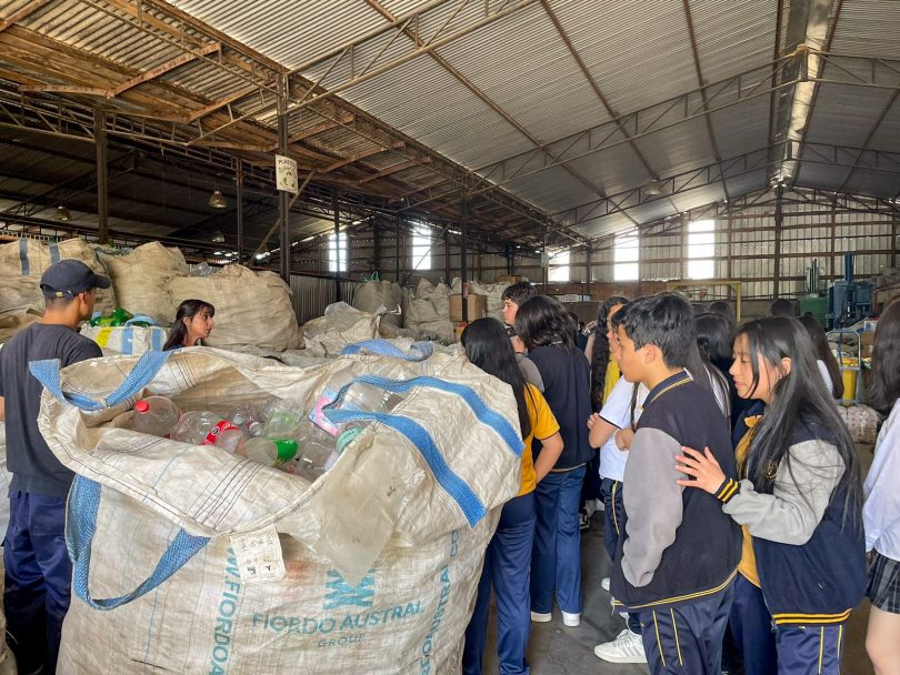 Específicamente estuvimos visitando el punto de acopio, lugar que recicla diferentes materiales como por ejemplo: el plástico, vidrio, papel, tetrapack, entre otros. Los estudiantes pudieron ver como se hace el proceso, desde la recepción de materiales, clasificación de los mismos, formación de «calugas» (compactar los residuos), luego nos explicaron que hacían con los materiales obtenidos.