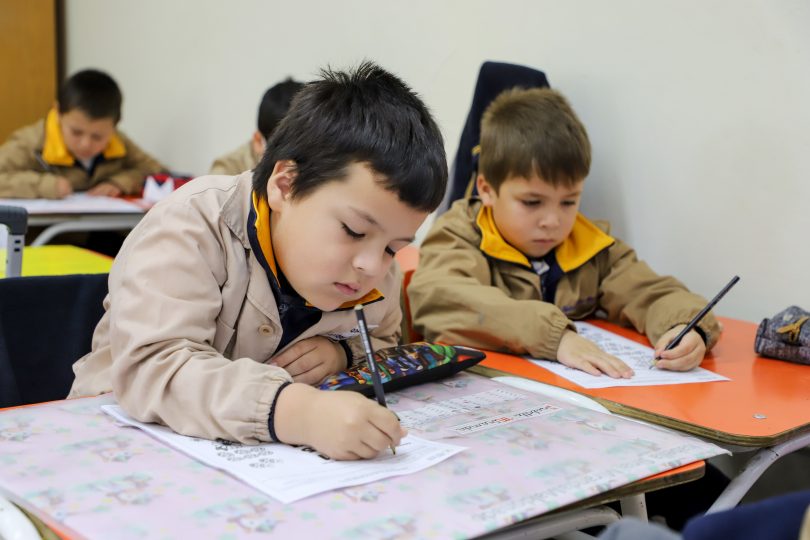Clases en sala de 1° básico: Las profesoras de 1° básico invitan a los estudiantes de Kinder a sus salas, se presentan, recuerdan las normas del aula y les realizan una clase modelo de Matemática para Kinder A y de Lenguaje para Kinder B.