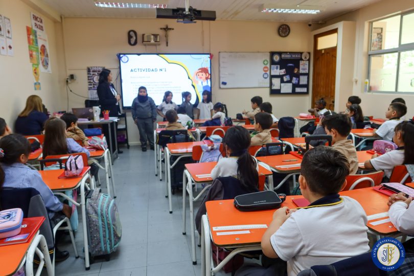 Durante la jornada del 19 de marzo del 2026, los estudiantes de 1° básico A participaron en un taller formativo realizado desde el departamento de convivencia escolar, liderado por la psicóloga del ciclo, enfocados en el buen trato entre pares. En este contexto, a través de actividades lúdicas y participativas, los niños y niñas lograron identificar acciones positivas en su entorno escolar y reflexionar sobre la importancia de utilizar un lenguaje respetuoso en la convivencia diaria. Estas instancias forman parte de las acciones formativas y protectoras del establecimiento, orientadas a fortalecer factores protectores, promover una sana convivencia escolar y favorecer el desarrollo integral de los estudiantes.